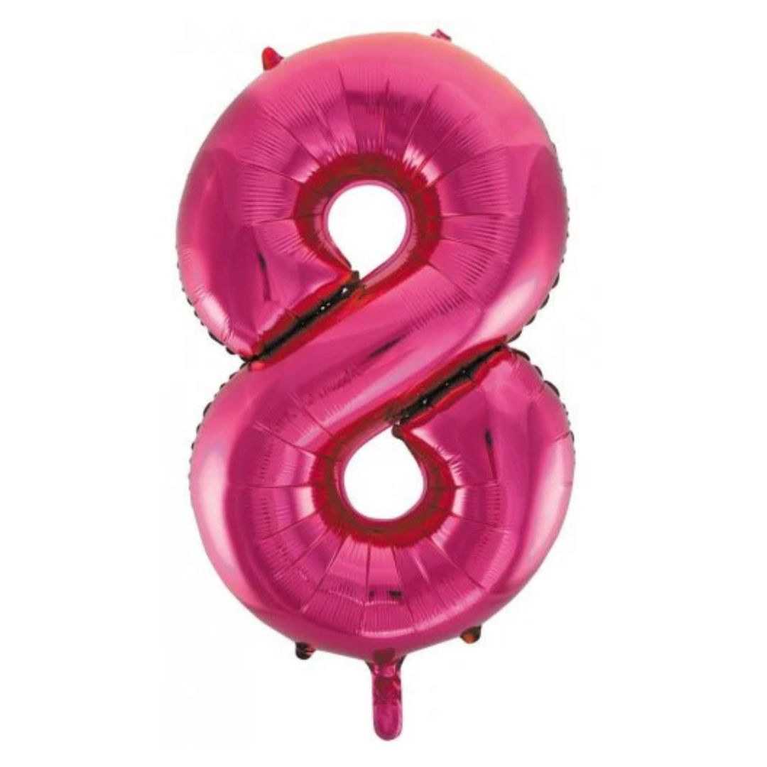 Bold, bright and oh-so-fun, these stunning magenta pink 86cm foil number balloons are the perfect way to celebrate any milestone in magenta pink style. Whether it's a birthday or anniversary, mix and match the numbers to mark your special date or age in a big, beautiful way. Fill with helium for a floating showstopper or air fill and display against a wall or balloon garland. However you style them, these giant pink number balloons guarantee a photo-worthy party moment!