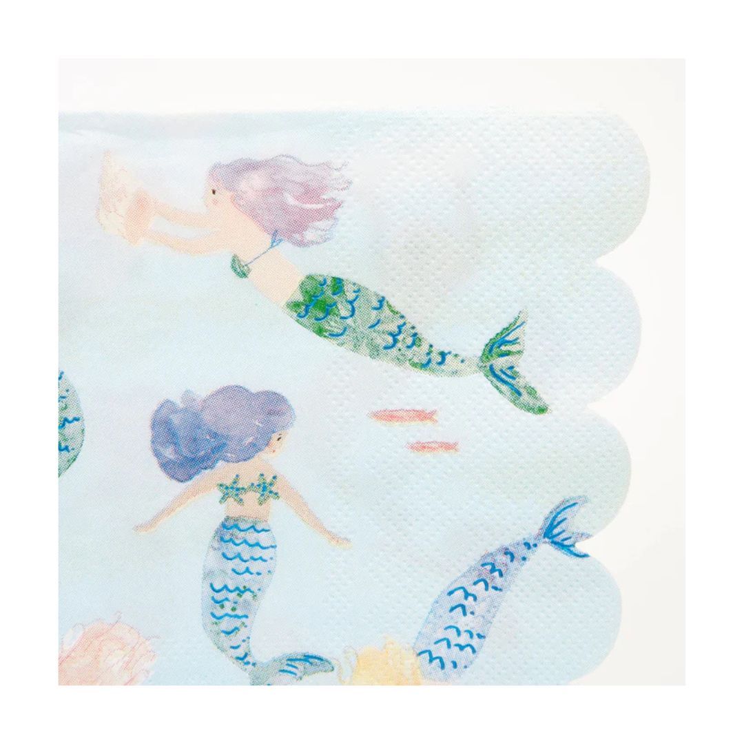 Make a splash at your party with these Meri Meri mermaid napkins! Each pack includes 16 napkins with blue foil detail and a stylish scallop edge.
